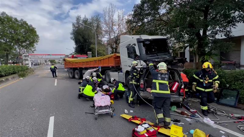 新/砂石車逆向撞休旅車 2人受困搶救中