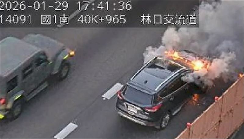 新/國1林口段休旅車火燒車 車流回堵5KM