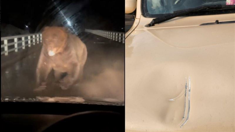 超巨棕熊狂追打凹引擎蓋!日員工倒車逃命