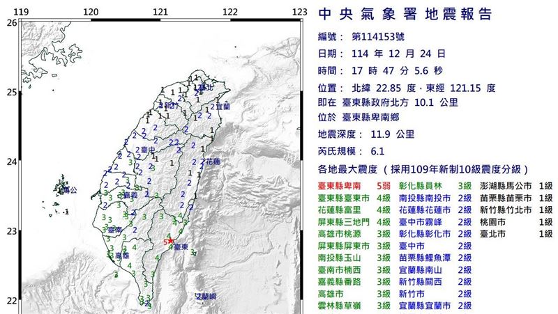 新/台東震不停!19:07第4震