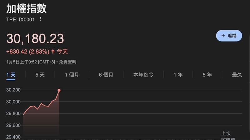 新/見證歷史!台股盤中攻克3萬點