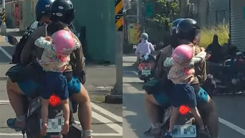 高雄夫妻騎車小孩「懸掛在外」網全看傻