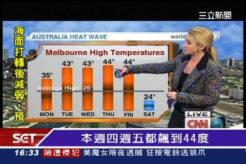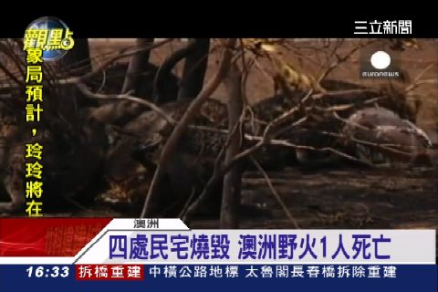 路樹起火燃燒,乾燥強勁風勢讓野火一發不可收拾。澳洲民眾難過大哭說「火勢從我的土地上延燒,我們覺得沒有希望,因為根本不知如何對抗。」澳洲南部地區高溫釀禍,至少35處野火蔓延,而連日來氣溫超過40度,將近300人送醫治療,許多動物逃生不急慘遭大火吞噬,可憐的無尾熊寶寶只能偷跑到院子裡喝水避暑。