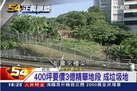 其實這塊地位在興隆路上,旁邊就是萬芳醫院,後頭是捷運站,光是小店面出租一個月就要15萬,如果以地價平均一坪70萬來算,這400坪算算有三億價值。高先生說,目前這400坪的土地,只能拿來種菜,一年卻要繳9萬多元的稅金,實在不合理。