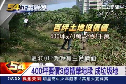 台北市大地工程處推託,土地開發與否不是水土保持的範疇,如果地主有規劃作為建築用地,應都發局來規範。但都發局卻說這歸大地處管,雙方互踢皮球,黃金地段變成垃圾山丘,不僅影響市容,也讓地主束手無策。(整理:實習編輯洪佳瑜)