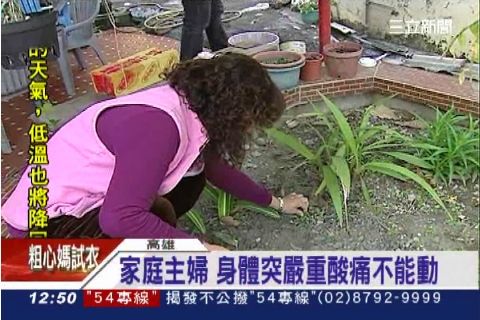 公主病通常是指嬌生慣養,要求獲得公主般待遇的女生。不過,在家掃地做家事的家庭主婦也得到公主病。當了10年家庭主婦的劉姓婦人,沒想到身體出了問題。劉婦疼痛地說:「我不能蹲下,而且因為身體痠痛什麼都不想做。」
