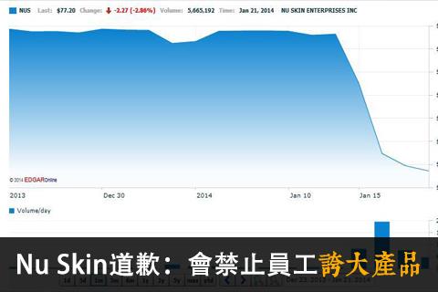 Nu Skin在中國曾經因為非法推銷(老鼠會)、非法利用媒體為自己打廣告(將自己買的廣告當成中國官媒的說法)等各種因素,被官方盯上,股價腰斬,被迫在美國證券交易委員會上發道歉聲明: