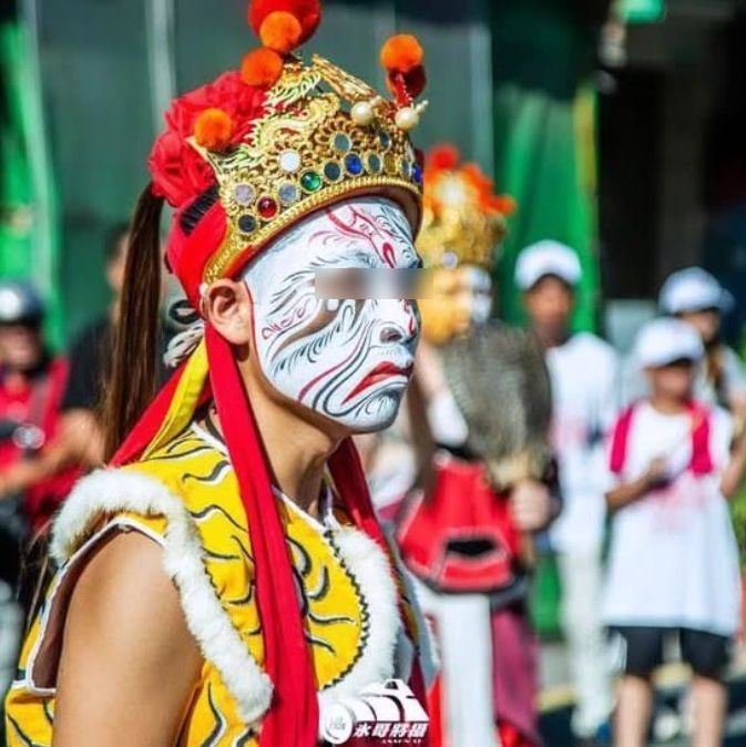 駱姓少年在廟會陣頭扮演官將首,神情透露出陰冷狠勁。(圖/翻攝自IG)