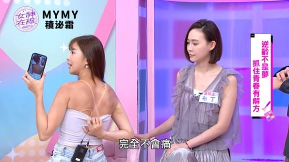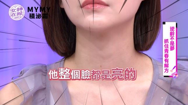 「青春」是所有女神追逐的夢想!但有沒有一瞬間,突然意識到,自己好像不青春了!可能是聽不懂的鄉民用語、不會用的最新3C產品或app,或是自拍時時眼尾的幾條細紋,或是低頭滑手機時不經意出現的脖紋!三立《女神在線》邀請來賓共同討論「讓人瞬間覺得青春快下車」的瞬間,並分享自己抓住青春的秘方。啦啦隊女神玥熹分享自己改善脖紋的法寶「MYMY積泌霜」,改善了她天生脖紋明顯的困擾。特殊的水感,讓現場來賓們驚呼「越擦越水潤」。