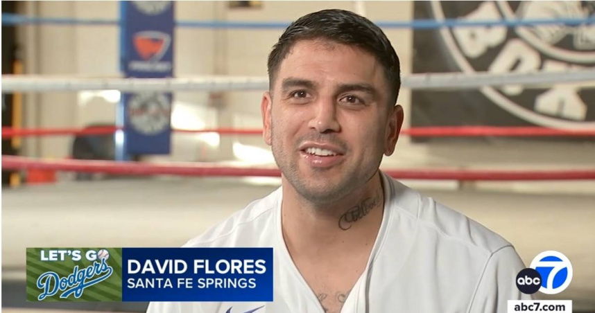 接到大谷翔平全壘打球的職業拳擊教練佛洛瑞斯(David Flores)。(圖/翻攝自ABC7 Eyewitness News)