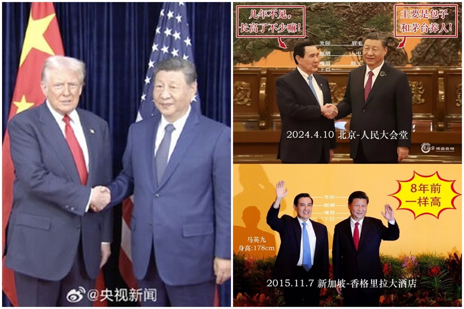 「川習會」今(30日)正式在南韓釜山登場,除了會議內容外,川普與習近平的一舉一動,也成為網友關注的焦點,就有網友抓到習近平偷穿增高鞋墊,178公分高的習近平,站在有190公分的川普旁邊,竟然看起來已經差不多高了。