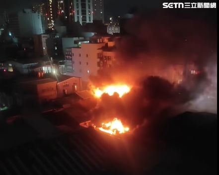 現場火勢猛烈、濃煙直竄夜空,從高處望去可見橘紅火光不斷竄出,黑煙向周邊街區快速擴散,現場狀況相當危急。(圖/翻攝畫面)
