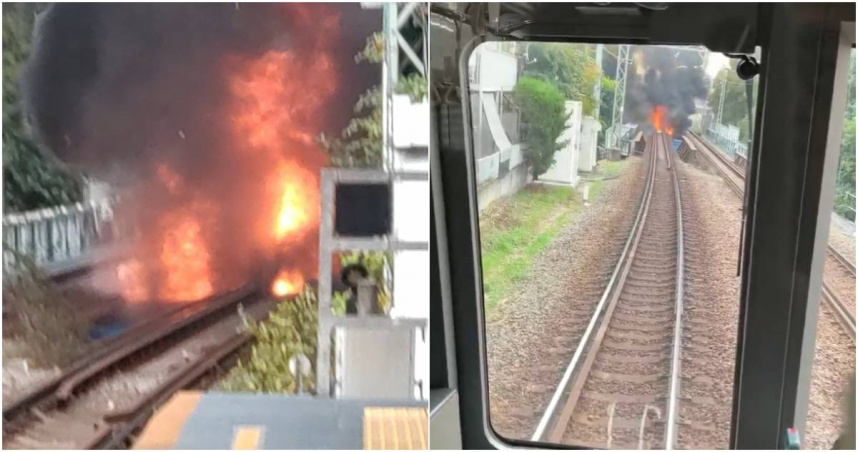 根據X平台上發布的照片及影片顯示,鐵道上竄出猛烈火舌,並冒出滾滾濃煙。目前消防人員已到場灌水滅火。
