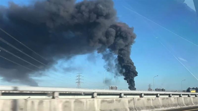桃園蘆竹的某回收工廠發生火警。(圖/翻攝畫面)30日上午7時許,桃園蘆竹區龍安街二段,某回收工廠發生火警,黑色濃煙直竄天際,讓路過的民眾也驚呆,消防局獲報後,已立即派遣人車前往灌救,目前無傳出有人員受困傷亡。