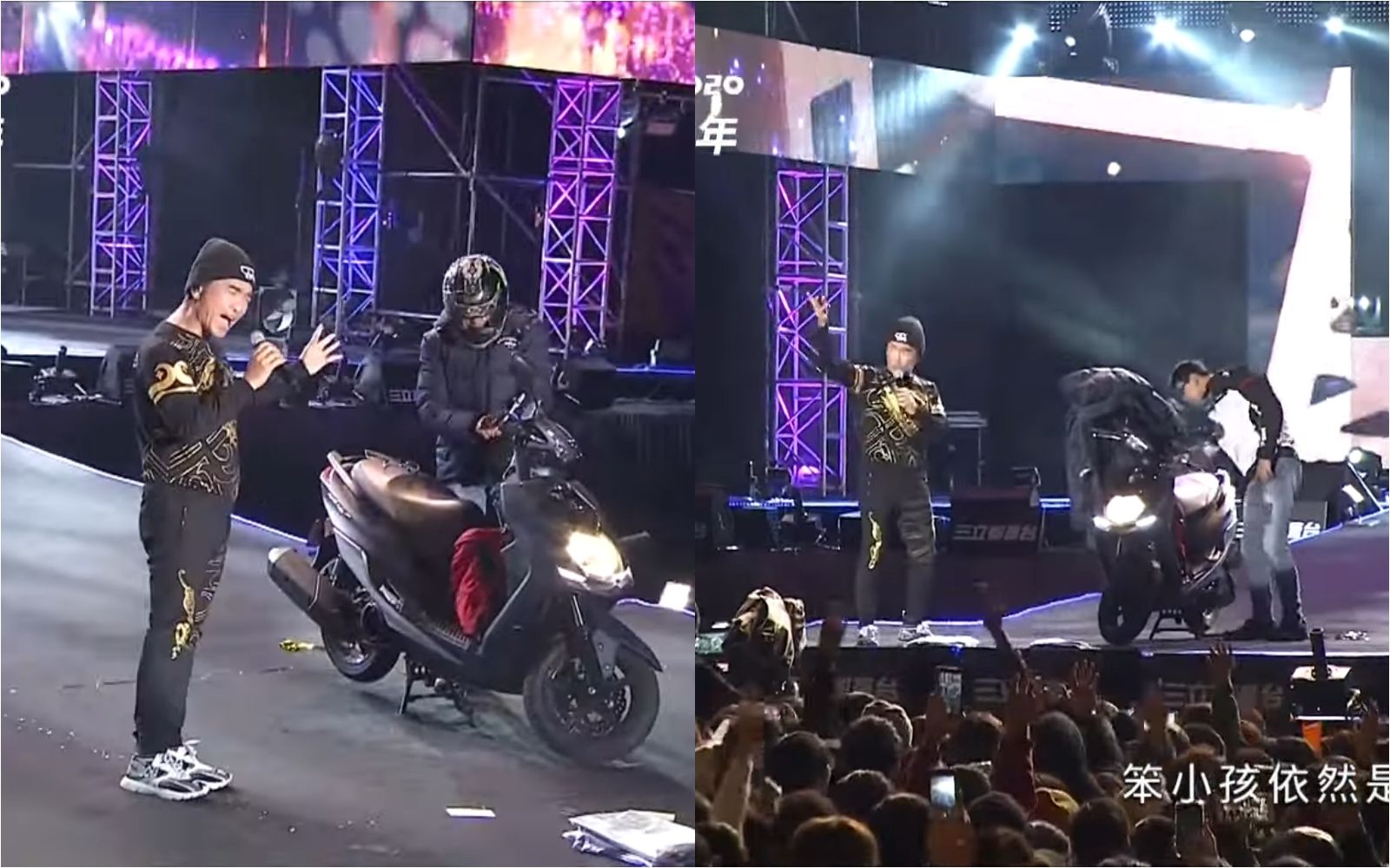 吳宗憲5年前在台中跨年演唱會被機車男騎士亂入,引發熱議。(翻攝自YouTube 三立電視 SET TV)吳宗憲跨年被機車亂入! 超淡定連觀眾都沒發現