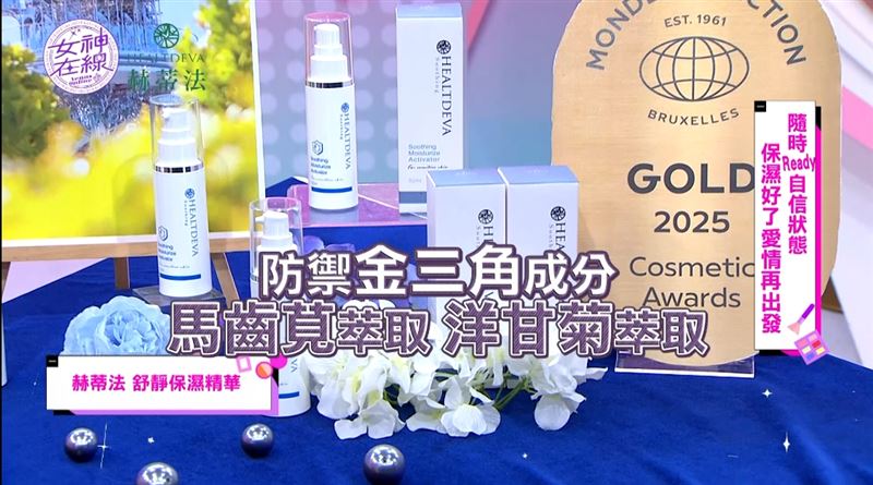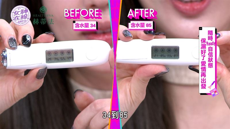 秋冬天氣變化大,忽冷忽熱造成皮膚敏感、乾燥甚至泛紅、脫皮,最慘的是,化妝都掩蓋不住,若在路上巧遇前男友,簡直社死現場!三立《女神在線》節目,邀請眾多女來賓們,分享各種「戀愛鬼故事」!孕媽媽愛雅就分享了自己膚況穩定的法寶「赫蒂法舒靜保濕修護精華」,現場實測保水度,擦上保濕精華的皮膚含水量,瞬間飆高1.5倍,現場來賓驚喜過望。