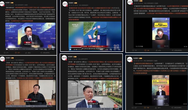 國安單位也掌握部分台灣在地協力媒體與中共官媒存在訊息連動,先是中國官媒放話、PTT發文呼應敘事、台灣部分媒體接力轉傳。台灣名嘴的親中論述也被中國官媒協力內銷,包括郭正亮、蔡正元、栗正傑等人宣稱「台灣好像有事」但美日卻未馳援等發言。另外,中國也「二創」台灣媒體影片,曲解我國防部新聞片段後回傳中國抖音、微博,作為內部宣傳使用。不過,我國安單位也從中共操作敘事中反向觀察,顯示中共非常在意我國海馬士火箭砲,他們在「正義之盾」宣傳圖卡下方,擺滿海馬士火箭發射車的船,好幾個訊息都在講這件事,看來非常在意我方的軍購及「斬首論」被破除。