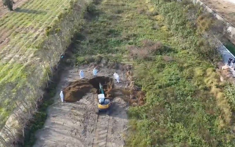 苗栗檢警以公權力介入,緊急開挖雞屍,避免禽流感疫情擴大。(圖/翻攝畫面)