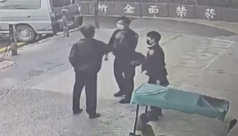蕭男離開醫院時又出手襲警,遭員警壓制在地並依法送辦。(圖/翻攝畫面)