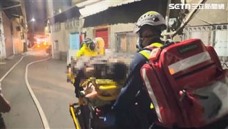 ▲陳姓小王獲救時,整個人無力癱軟在擔架上。