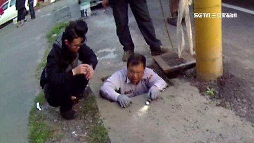 ▲員警為找出夾鏈袋忍臭爬進排水溝。