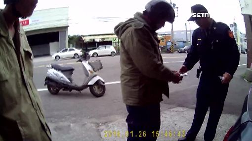 警員:「拿手機給我幹嘛!都拿出來!」溫姓男子左掏右掏還交出手機,不過警察發現他的褲子右側口袋有個東西,根本沒有拿出來。