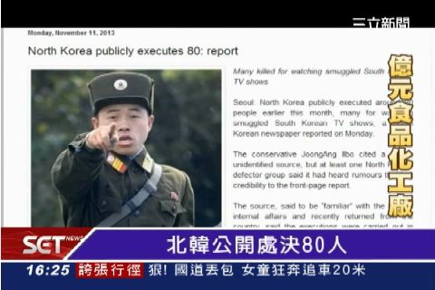 南韓媒體報導,北韓公開處決80人,其中多人的罪名是,觀看走私的南韓節目。這是金正恩上任兩年來第一場公開處決,檯面上清除叛逆,實則為鏟除異己。