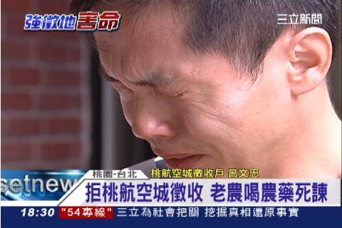 馬總統上任第一年就喊出愛台12項建設,其中就包括桃園航空城延宕多年,現在還爆出強徵土地民宅爭議!一名83歲的呂老先生不滿一輩子心血,農地、老家、祖墳都被政府劃入要蓋住宅區和機場跑道範圍,忿而在自家農田喝農藥死諫抗議。兒子呂文忠想到自己父親,因為政府強硬徵收賠上老命,忍不住在鏡頭前痛哭。