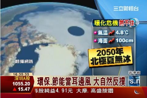聯合國政府間氣候變化專門委員會(IPCC)警告,21世紀末地球平均氣溫將上升4.8度,海平面上升近100公分,若是再把節能減碳當成耳邊風,那北極海冰到西元2050年可能會完全消失!