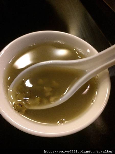 和以前一樣都有自助的綠豆甜湯,吃完辣辣的後再來一點點甜在心,算是個完美ending。