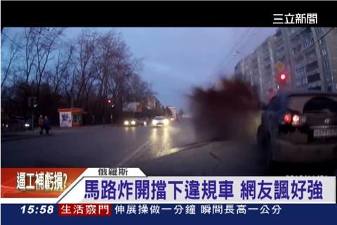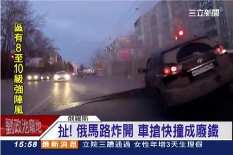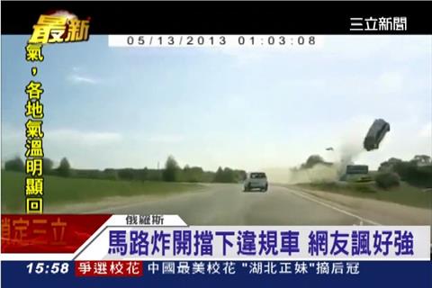 好好的馬路怎會爆炸?當局表示應該是地底的管線斷裂,湊巧擋住違規車輛。同樣也發生在俄羅斯,這輛汽車則是因前輪爆胎整個失控飛到半空中,地上揚起巨大煙塵,駕駛當場喪命。看來,在交通亂象惡名昭彰的俄羅斯開車,心臟真的得要夠強!