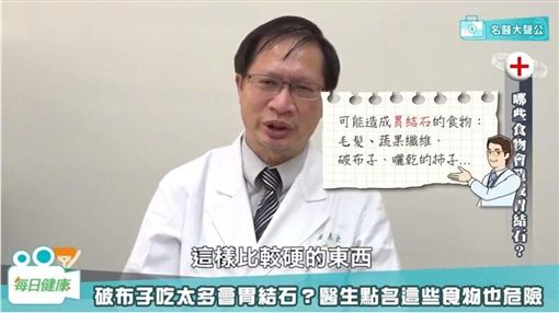 而常見胃結石的案例,包含精神異常者吃自己的頭髮,另外高纖維的水果、青菜等太硬的蔬果也容易造成胃結石。如破布子、曬乾的柿子等,一方面不易消化、一方面也不易蠕動從胃帶到十二指腸,加上新的食物進來,其殘留又會黏著在食物的上頭,就有可能像雪球般越滾越大。