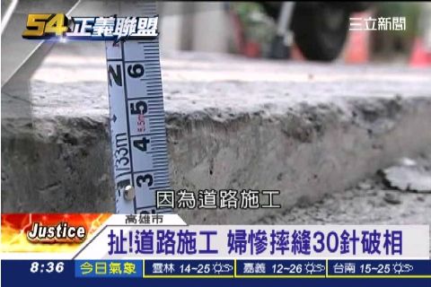 因為路面施工形成五公分落差,婦人摔車滿身傷,而事發地就在道路施工最頻繁的鳥松仁武區。鳥松區道路三百公尺就有三處施工,附近道路可以說是「地無三天平」,下水道工程佔住整條道路,還有擋在路中央的工地,隨處可見開挖管線工程,光是美山路和神農路十個月就進行40件工程,因為美山路上,包括市府交通局、台電和中華電信一共七個工程施工,還有神農路上,台電、自來水和中華電信也有五個工程進行,居民不知道路該怎麼走。