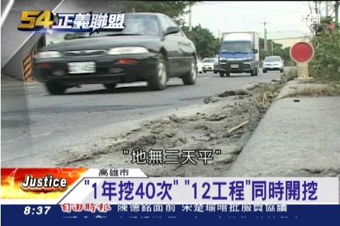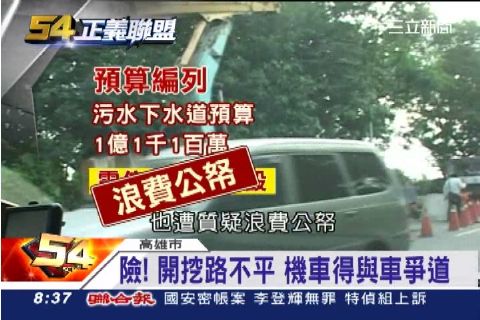 水利局編列污水下水道預算,包括美山路和神農路的鳳山區經費高達一億一千一百萬,如果加上電信業者和其他鄉里建設預算經費可觀,也遭質疑浪費公帑。工務表示,未來將加強整合聯繫,只是現在道路持續開挖,居民依舊和大車爭道,就怕婦人摔成豬頭的慘況,不會是最後一個。