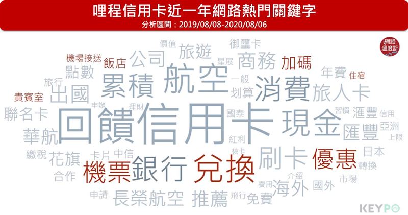 ▲觀察網友討論哩程卡的熱門關鍵字,可以兌換機票是吸引大家使用的一大重點。