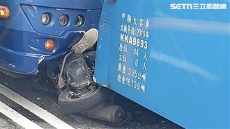 新/機車遭2遊覽車夾擊 女騎士受困車底