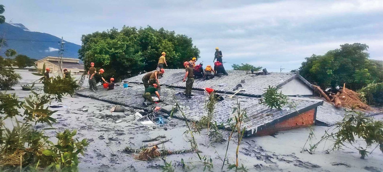 6歲女童「小沂」(右)被搜救人員抱出來時,全身都是泥濘,受難遭遇令人心疼。(翻攝畫面)李鴻源隨即召集台大土木團隊重新運算,結果顯示「非常嚴重」。當晚,內政部緊急指示花蓮縣政府將撤離範圍擴大到1,800戶、總計8千多人;花蓮縣政府接獲通報後,翌日清晨8時起,陸續透過廣播車、村里長系統要求該區民眾撤離,但因非屬強制撤離行動,約5千名位民眾選擇「垂直避難」,也就是直接待在家中2、3樓。