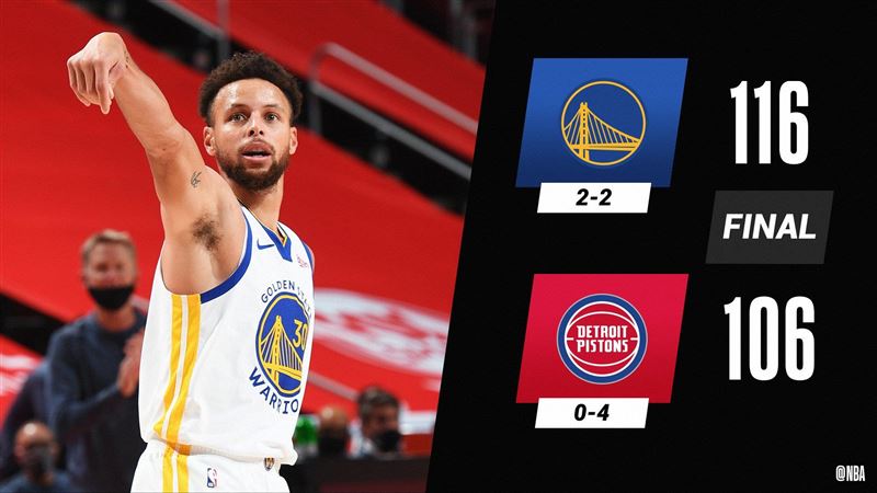 勇士開季連兩戰皆以慘敗作收,前2場就合計淨輸65分,近來他們力圖振作,面對公牛奪下首勝後,此役對活塞儘管上半場陷入雙位數落後,但末節Curry聯手Andrew Wiggins拉出一波17-4的猛攻,就此鎖定勝利,終場以10分之差擊敗活塞。