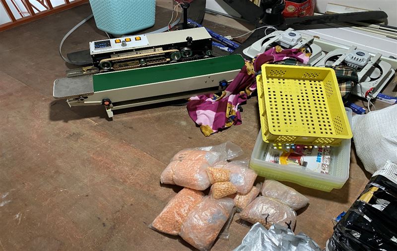 追查過程中,警方也查獲林男將毒品分裝廠隱藏在詐騙機房,掩人耳目,同時製造含硝西泮成分的毒品咖啡包,專案小組同步查扣打錠機、封膜機、攪拌器等工具,防止毒品外流。